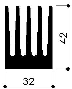 KOD KARTY 973: radiator ze stopu aluminium EN AW 6060, dostępny w prętach zwykle o długości 4 m lub przyciętych na wymiar i obrobionych maszynowo zgodnie z rysunkiem, na tym profilu aluminiowym możliwe jest również utlenianie anodowe w różnych kolorach
