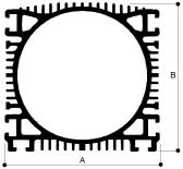 Heat sink table sorted by the size indicated in the drawing with "A". The length of the bars (indicated in the drawing with "L") varies from 2 to 4 meters depending on the heat sink model. Custom cuts are made on aluminum profiles